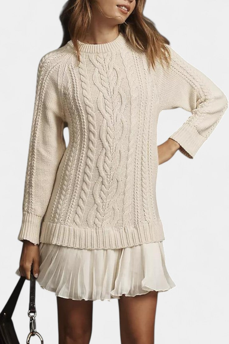 Twisted Knit Mini Sweater Dress with Round Neck by Césarine