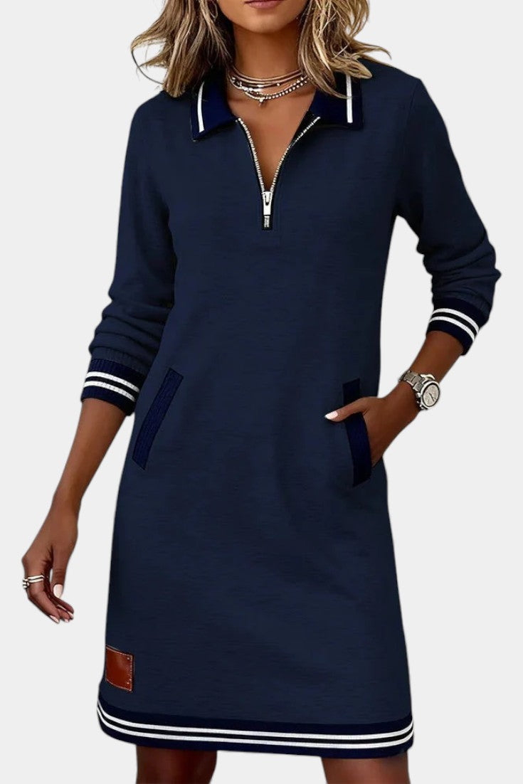 Zharina Ruffled Collar Casual Dress with Hidden Zip