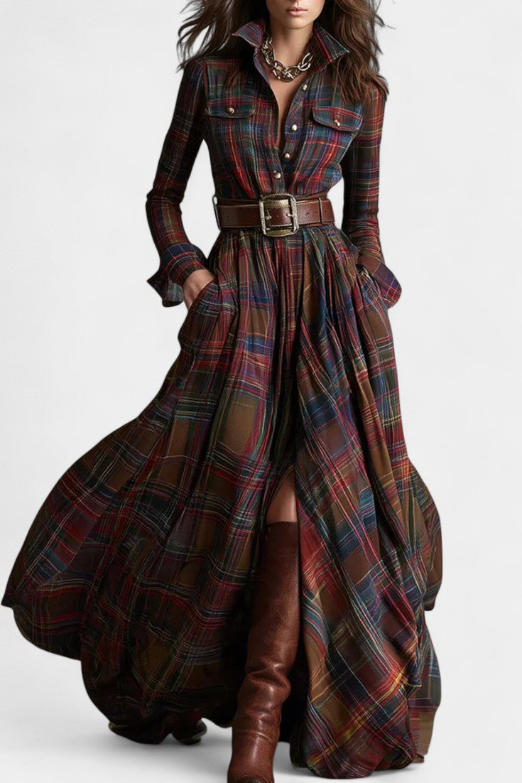Eustelle Maxi Dress combines rustic charm with relaxed elegance. Crafted from a durable blend of cotton and polyester, this checkered maxi dress features a flowing cut that flatters all body shapes.