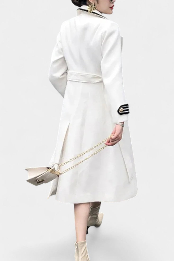 Experience the perfect blend of couture elegance and enveloping softness with the Narcisa coat. Its long, structured cut and delicate contrasting finishes create an impeccable drape that elongates your silhouette.