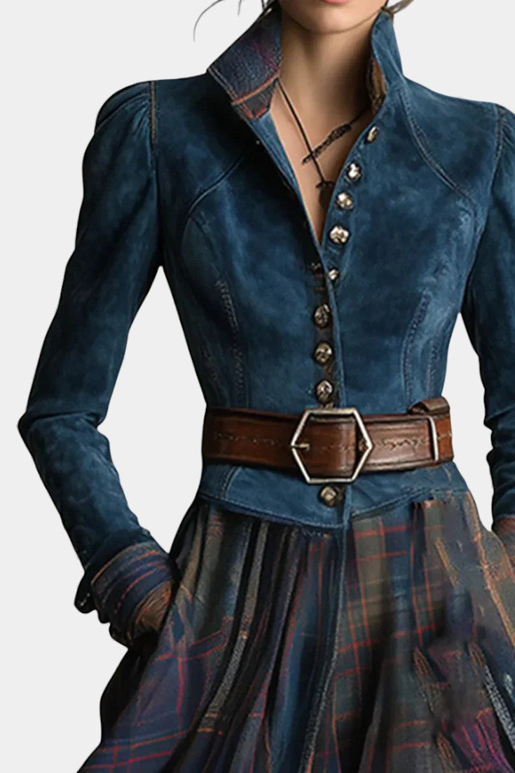 Chic and Bold Liza Dress reinterprets retro ethnic spirit with a flowing maxi silhouette crafted from soft and luxurious microsuede. Its deep blue checkered pattern adds a handcrafted, timeless touch, while the loose fit ensures elegant comfort for everyday wear.
