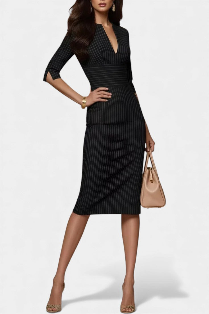 Sibylle Striped Fitted Midi Dress in Black