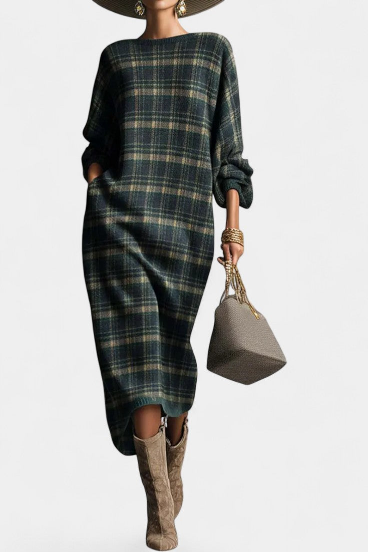 Philae Elegant Flared Dress Featuring a Sophisticated Tartan Design