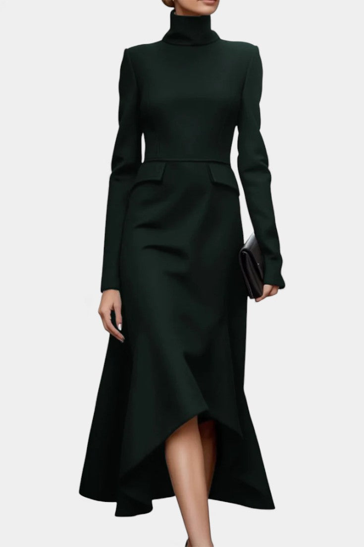 Géralda Long Sleeve High Collar Fitted Midi Dress