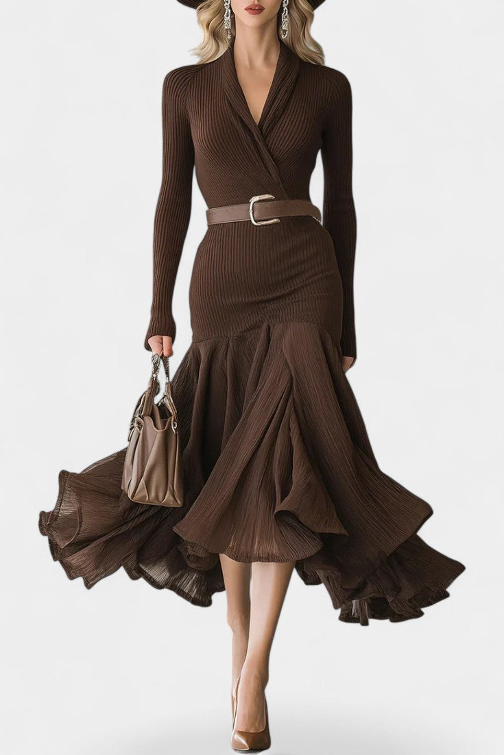 Rixende V-Neck Pleated Office Dress