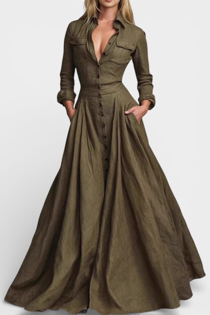 Gabriela Long Button-Up Dress with Tailored Waist
