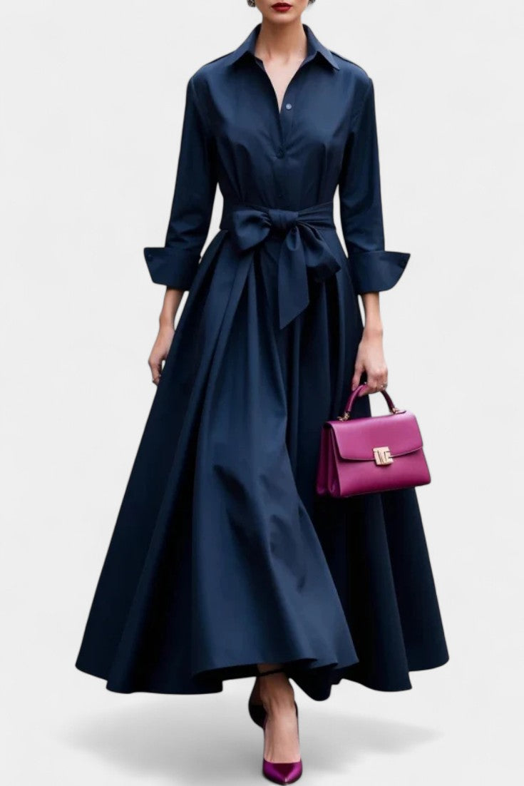 Yésica Elegant Waist-Defined Flowing Shirt Dress