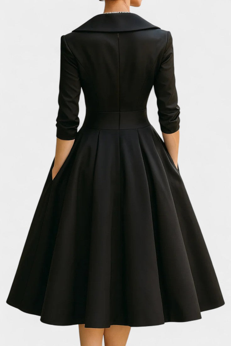 Solid Color Nixie Midi Dress with V-Neck and A-Line Silhouette