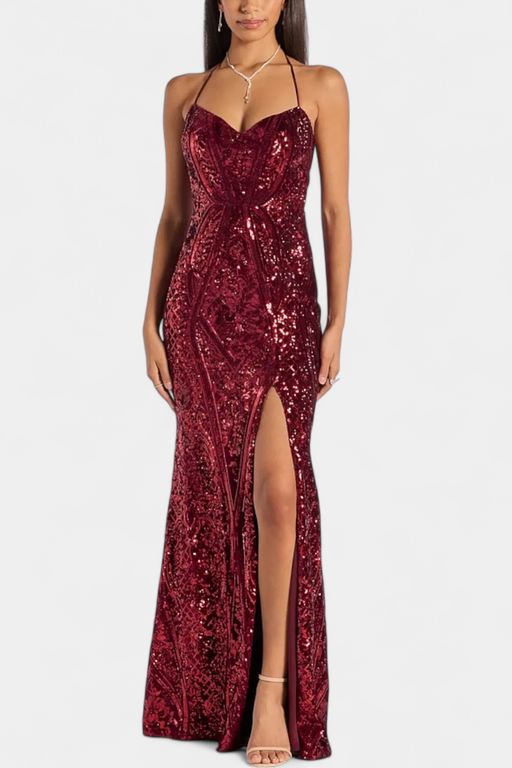 Taisila Crossed Neckline Sparkling Velvet Dress