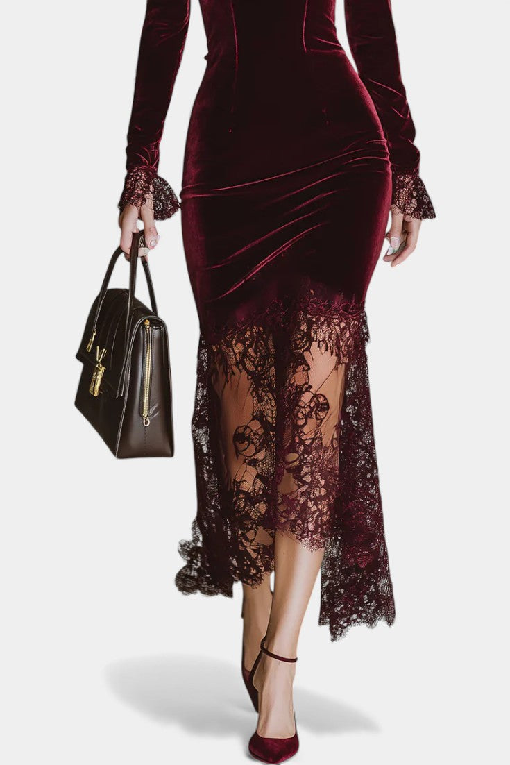 Elevate Your Elegance with the stunning Carla dress, crafted from luxurious deep burgundy velvet that exudes a delicate sheen. This dress is designed to flatter your silhouette while offering a long and slender presence.