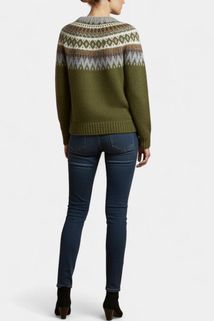 Maréva Chunky Knit Jacquard Sweater with Round Neckline