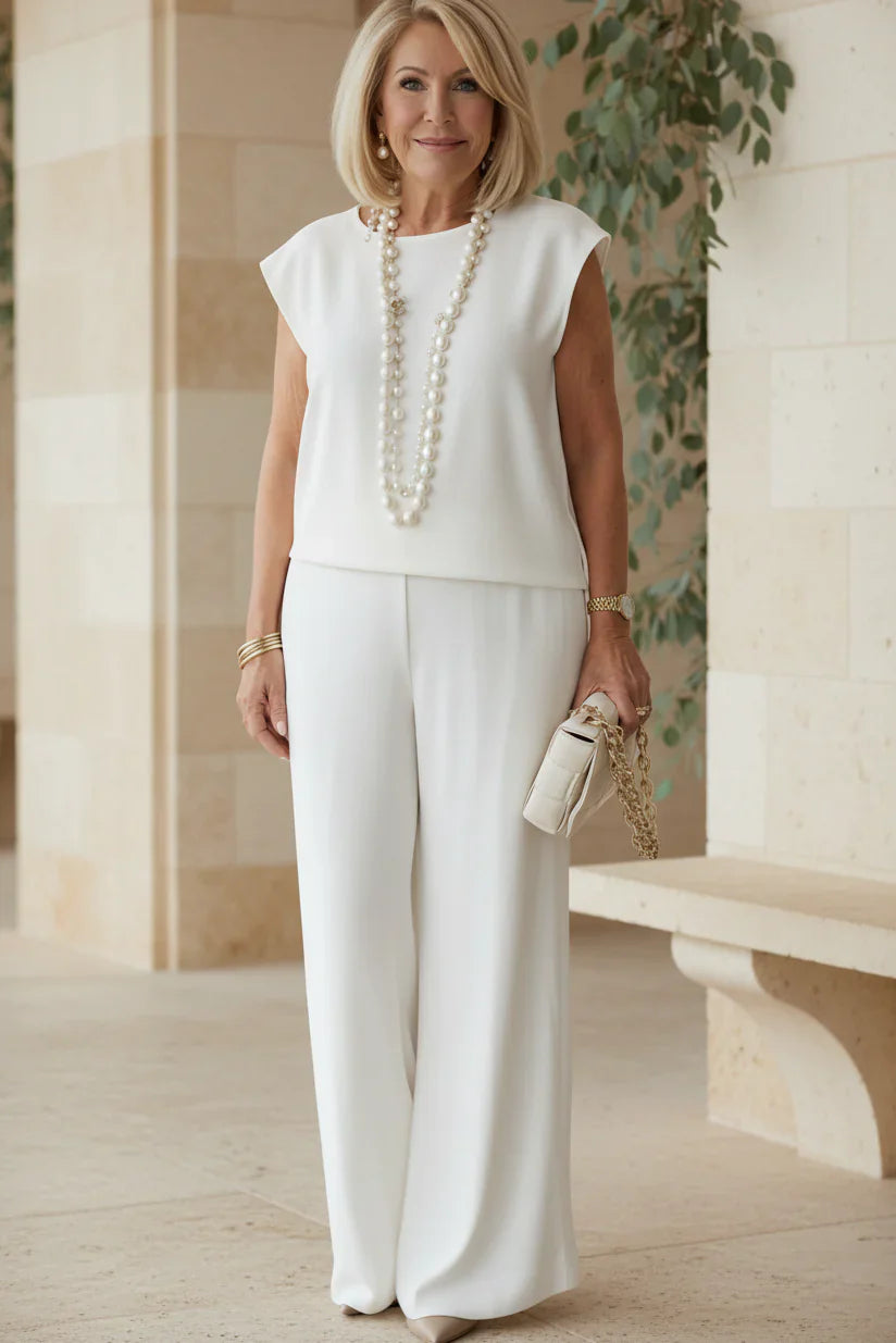 Embrace timeless elegance with this all-white ensemble that blends minimalism and refinement. Perfect for both casual gatherings and formal occasions, this outfit brings a clean, confident look that radiates grace with every step.