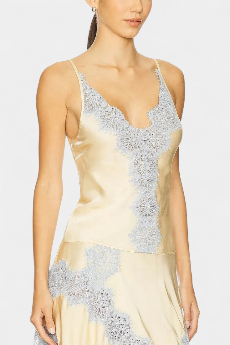 Mirren Satin and Lace Contrast Set with Flowing Midi Skirt