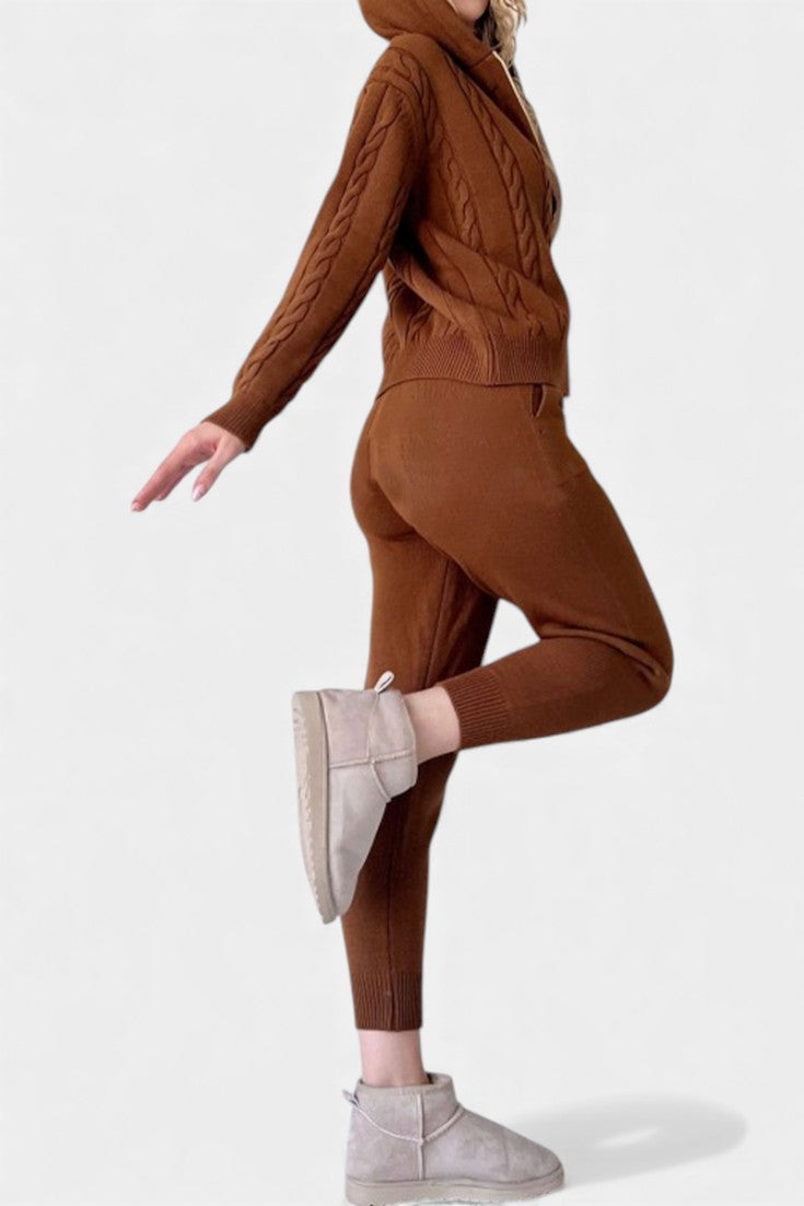 Comfort Meets Style: Crafted with a thick knit and sculpted pattern, this set offers a relaxed fit that’s essential for cool days.