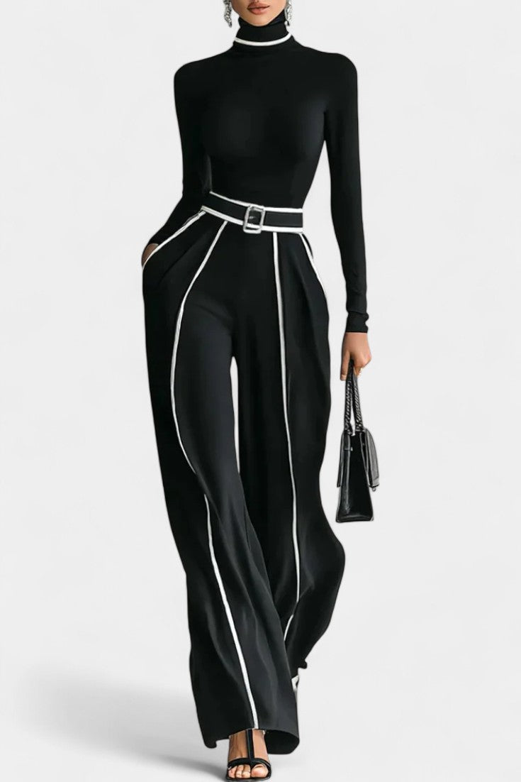 Ailany High Neck Structured Ensemble with Asymmetrical Waist Trousers