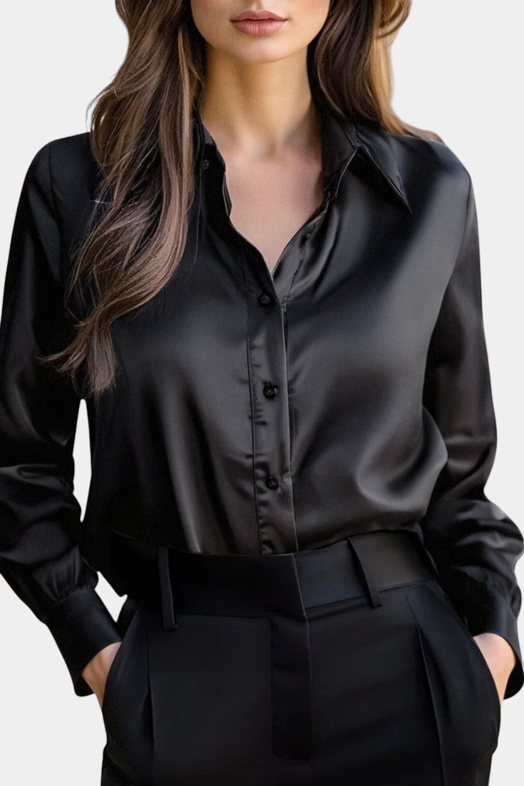 Experience the perfect blend of elegance and modernity with the Alida blouse. Crafted from luxurious black satin, its smooth texture beautifully captures light, while the loose fit provides a flattering drape for all body types.