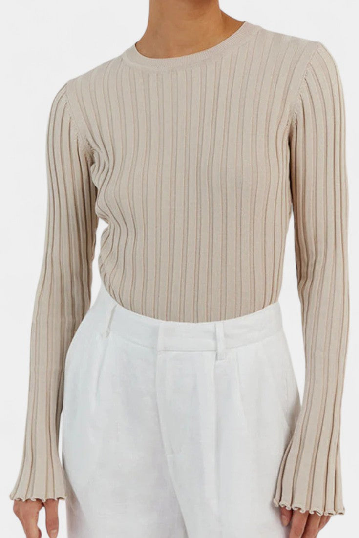 The subtle ribbed knit offers texture and support, making it ideal for a chic everyday look.
