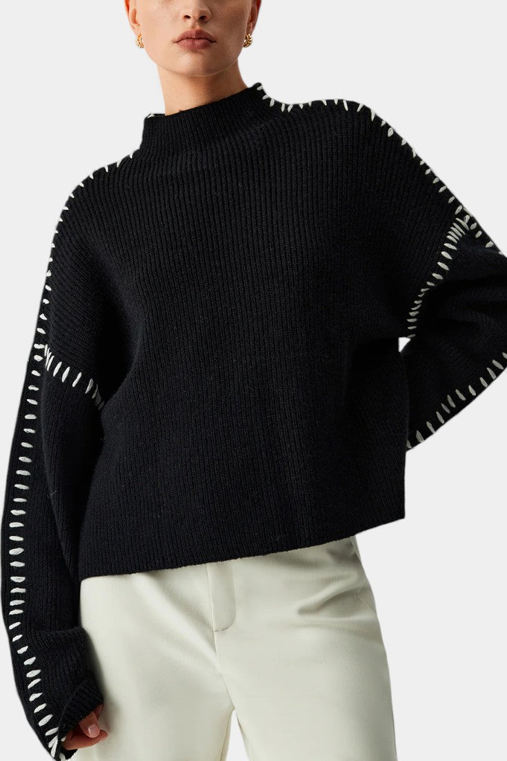 Discover a modern essential that effortlessly attracts attention. The Rowena sweater features a fluid oversized silhouette and a structured turtleneck that beautifully frames your face.